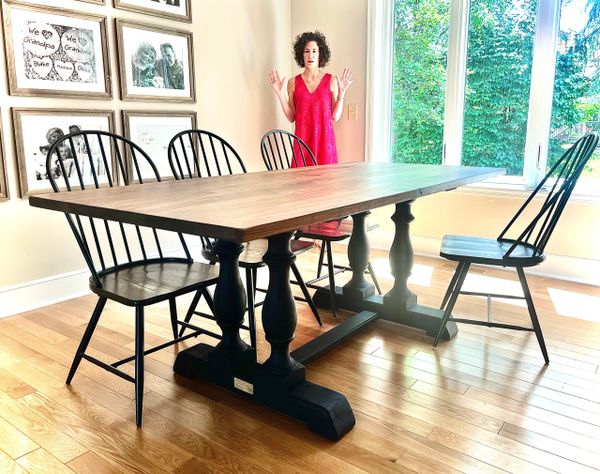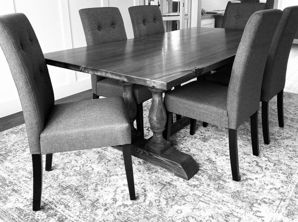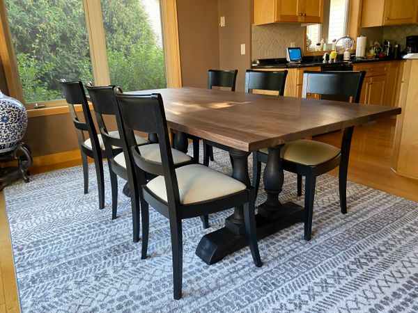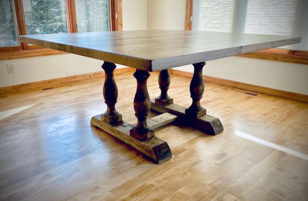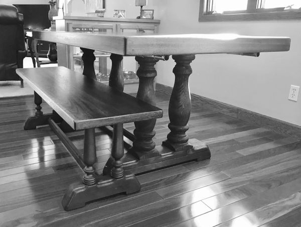 Table Top: I offer a vast selection of wood choices. Utilizing only the best hardwoods based on Janka density and fiberistic properties. For a finished product that will withstand the dry humidity of our Minnesota winters and the everyday use of your family's activities. (Please see "Wood Species Page" for more details.)
